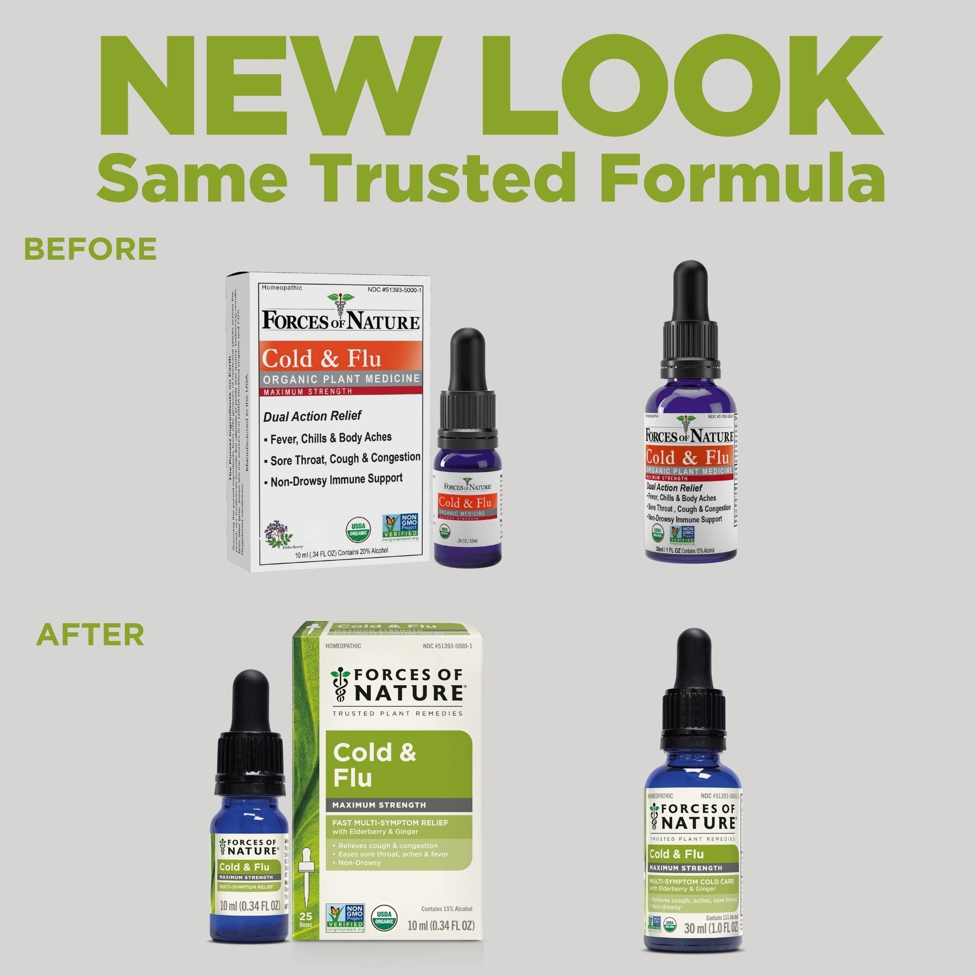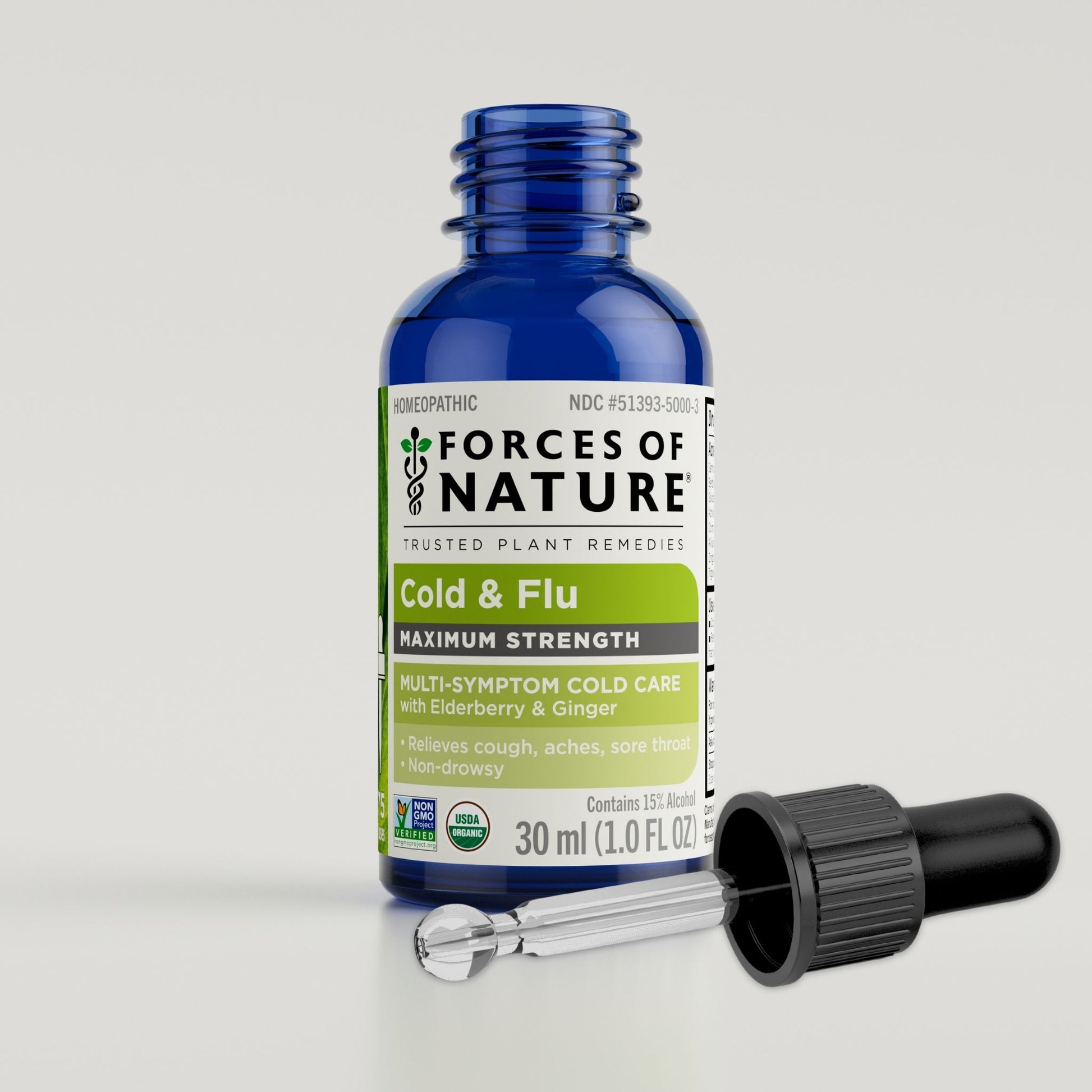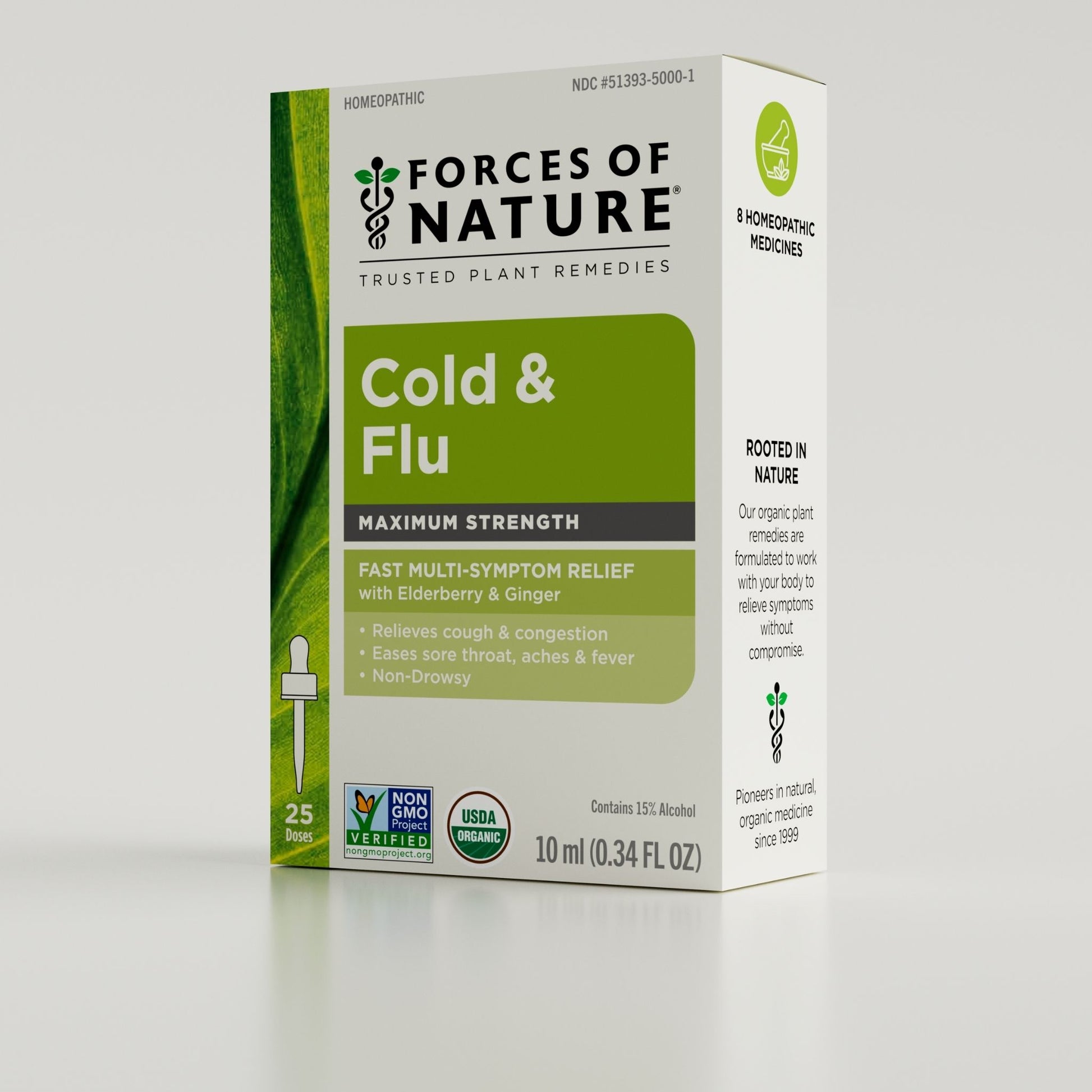 Forces of Nature Cold & Flu Maximum Strength delivers fast, all natural relief from tough cold and flu symptoms: congestion, cough, sore throat, body aches, and fatigue. Powered by a blend of certified organic homeopathic ingredients including Sambucus Nigra (Elderberry) and Berberis Vulgaris (Barberry), both packed with antioxidants and known for their ability to support the immune system, this advanced formula helps you bounce back faster. Cold & Flu Maximum Strength works in harmony with your body to fight symptoms and support immune response offering a natural approach compared to conventional products that can cause drowsiness, cotton mouth or other unwanted side effects.