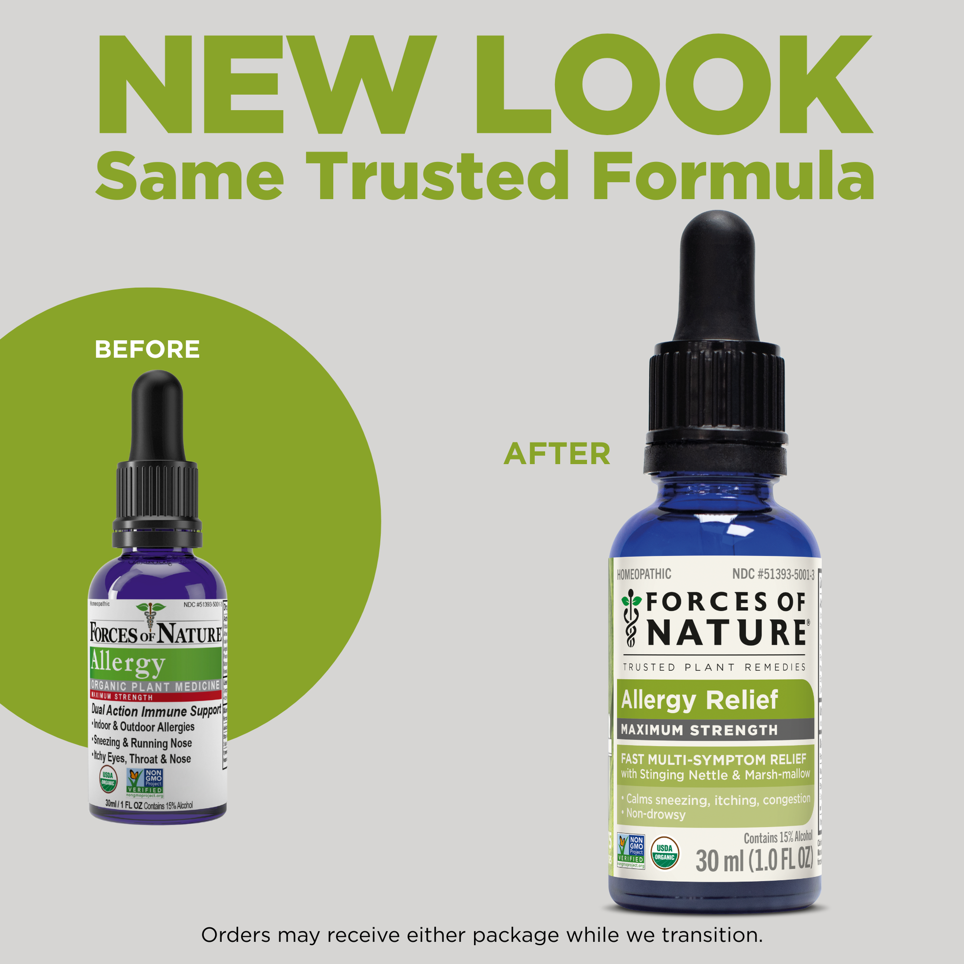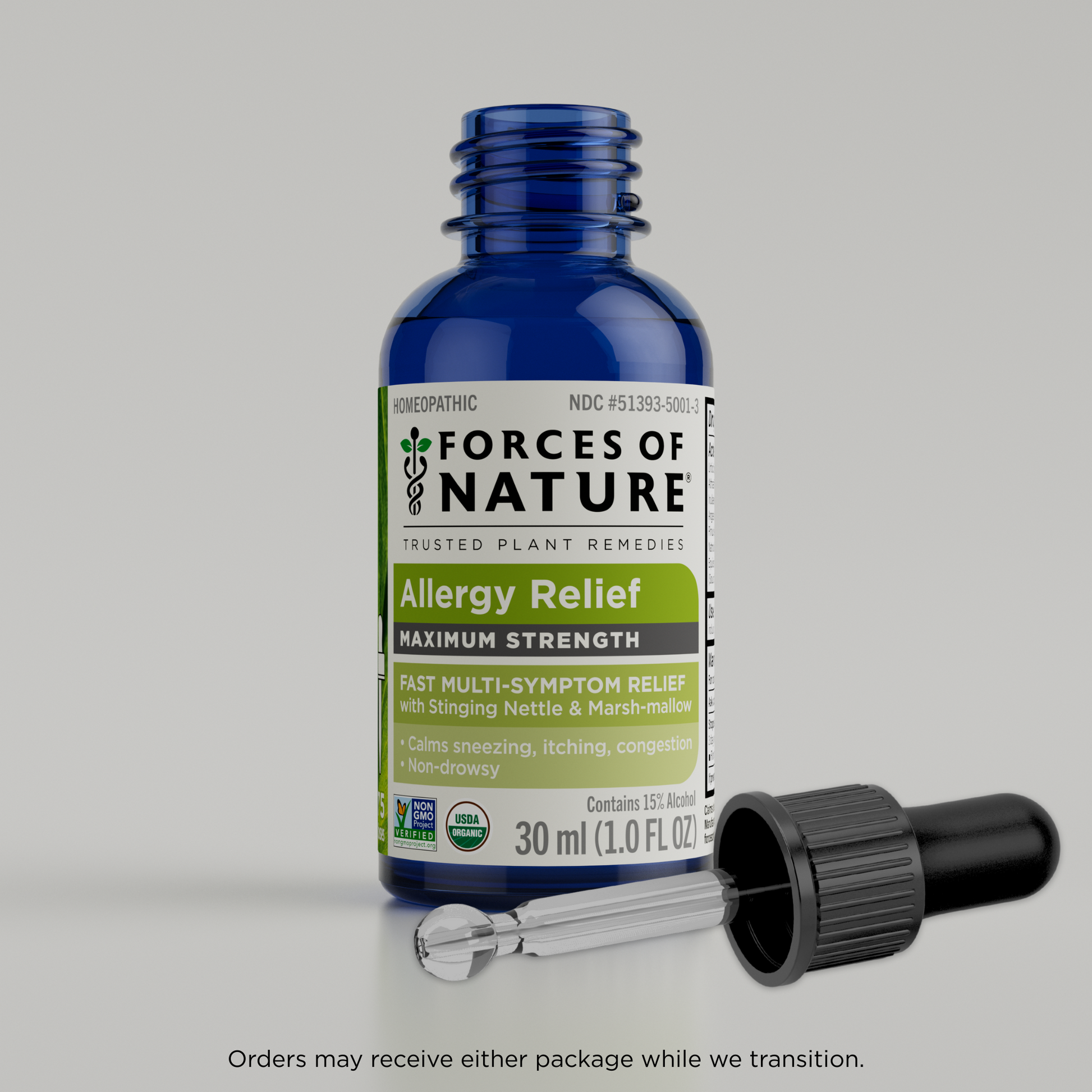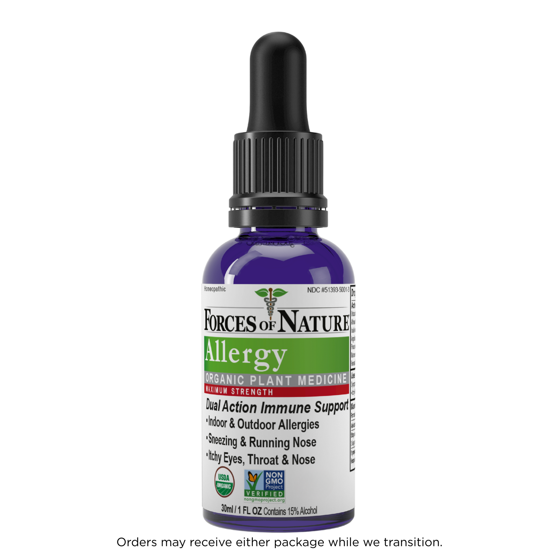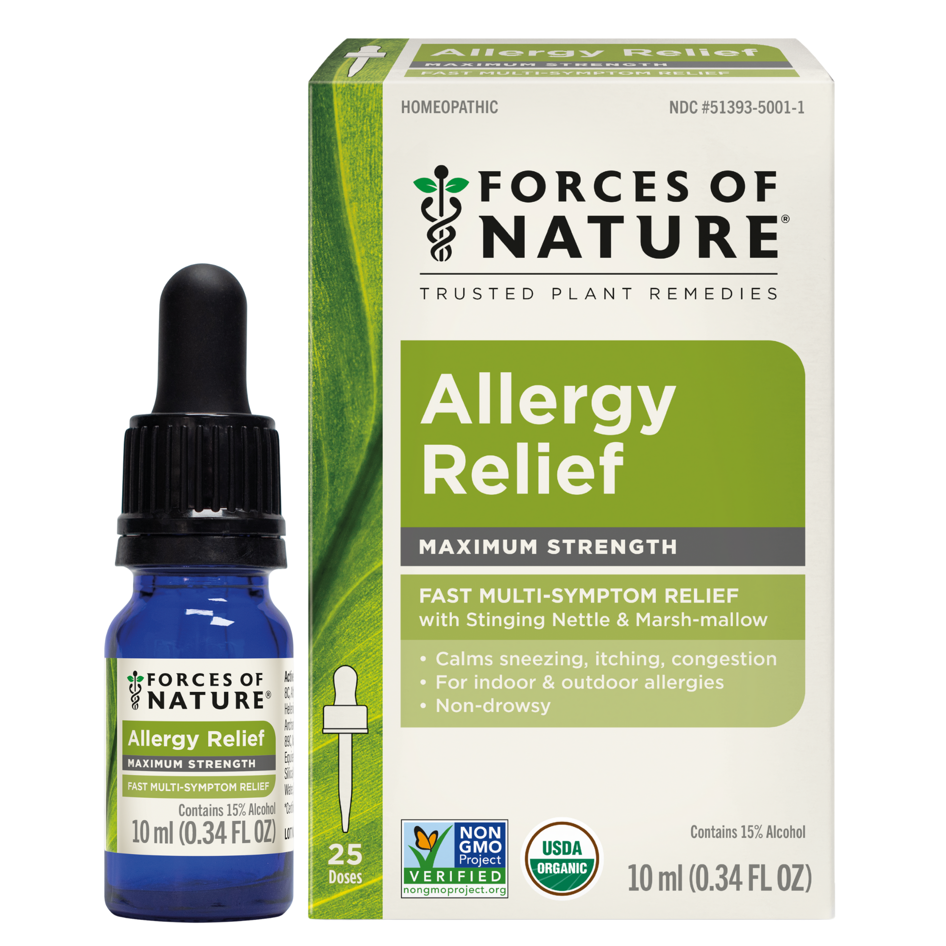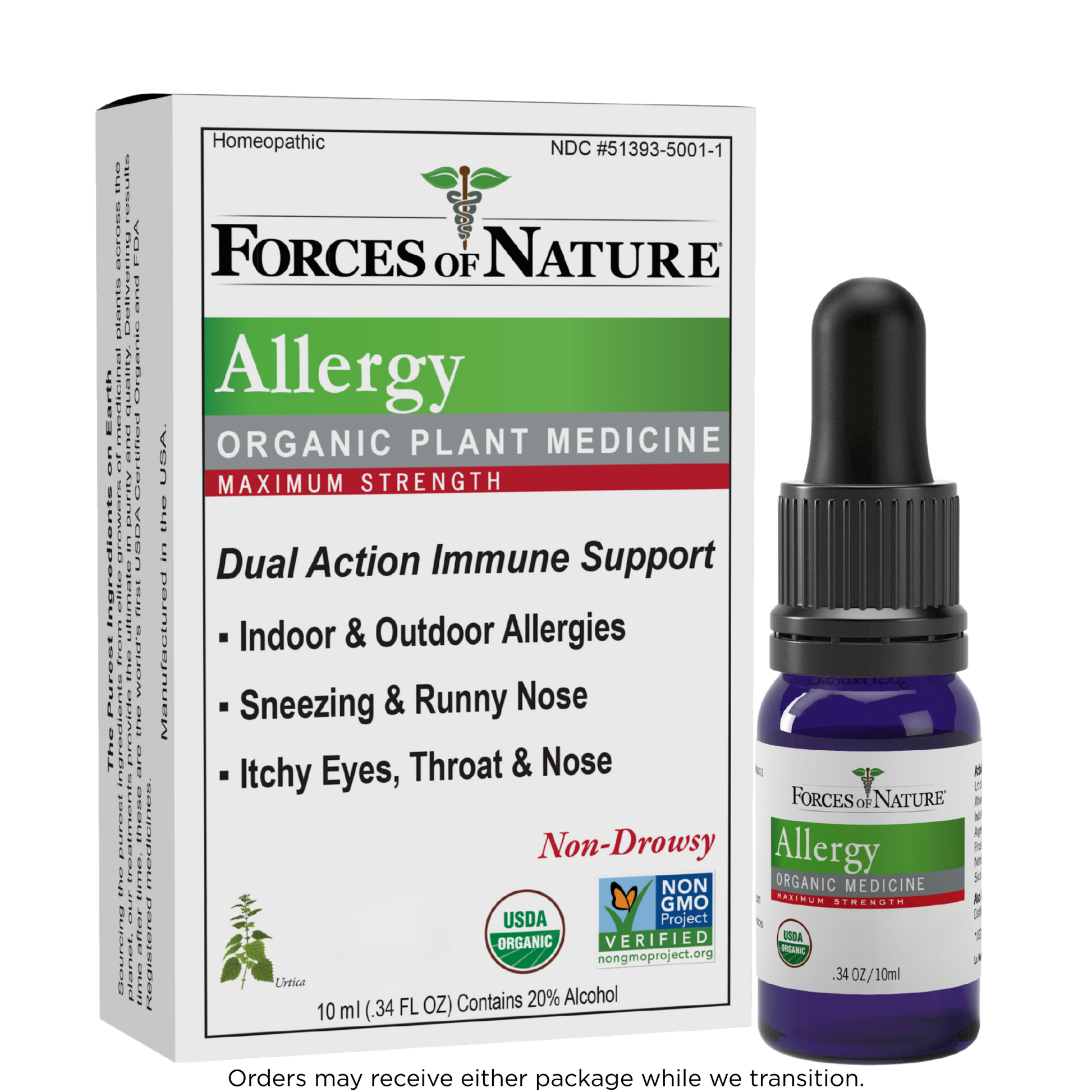 Forces of Nature Allergy Maximum Strength is an all-natural remedy designed to bring fast, effective relief from sneezing, runny nose, itchy eyes, and congestion. Formulated with a unique blend of organic homeopathic medicines, including Urtica Dioica (Stinging Nettle) and Althaea Officinalis (Marsh-mallow), that work to calm inflammation and are known to calm allergic reactions, reducing histamine-like responses. This natural product uses plant-based ingredients as compared to conventional OTC allergy medicines with synthetic chemicals that can cause drowsiness, dry mouth, or other unwanted side effects.
