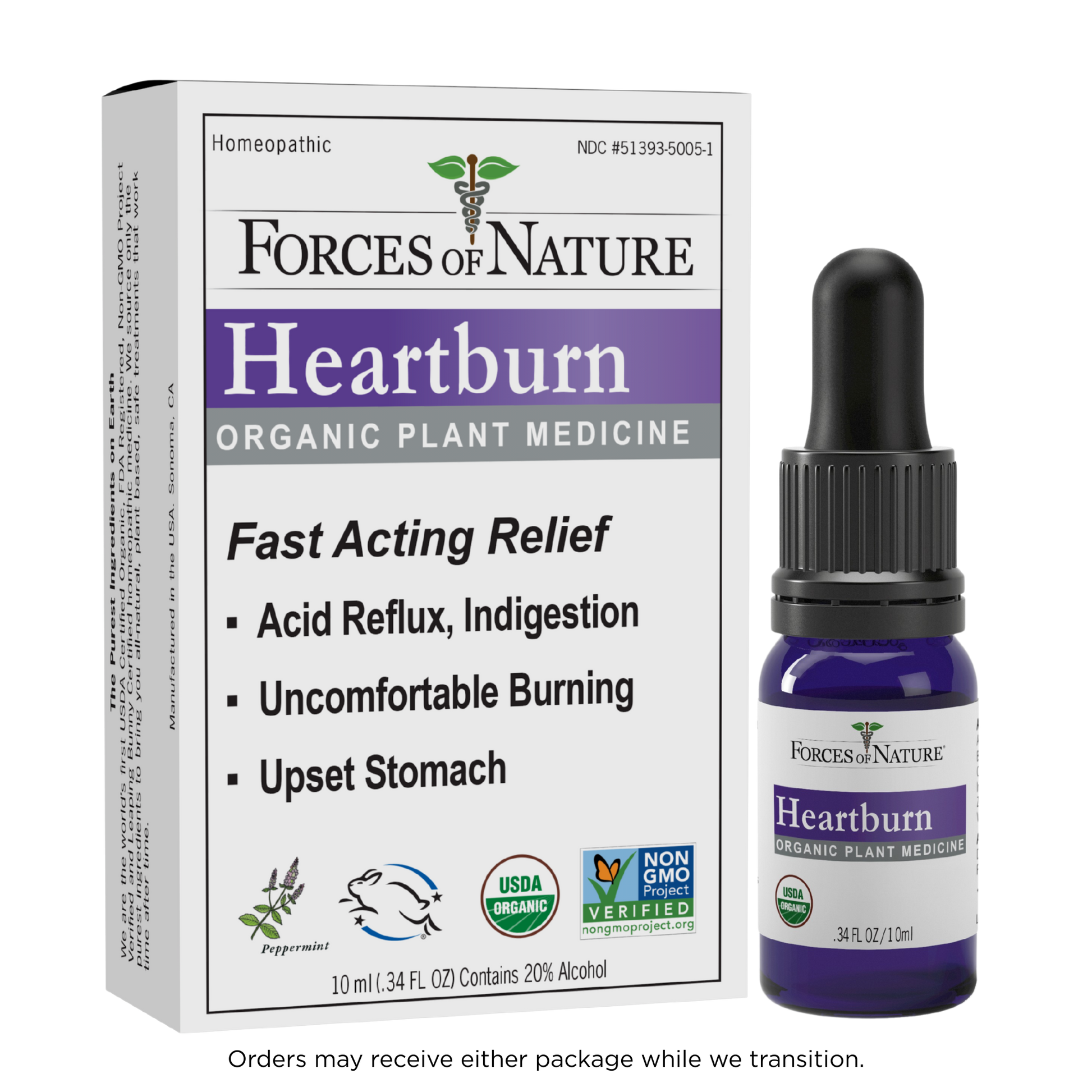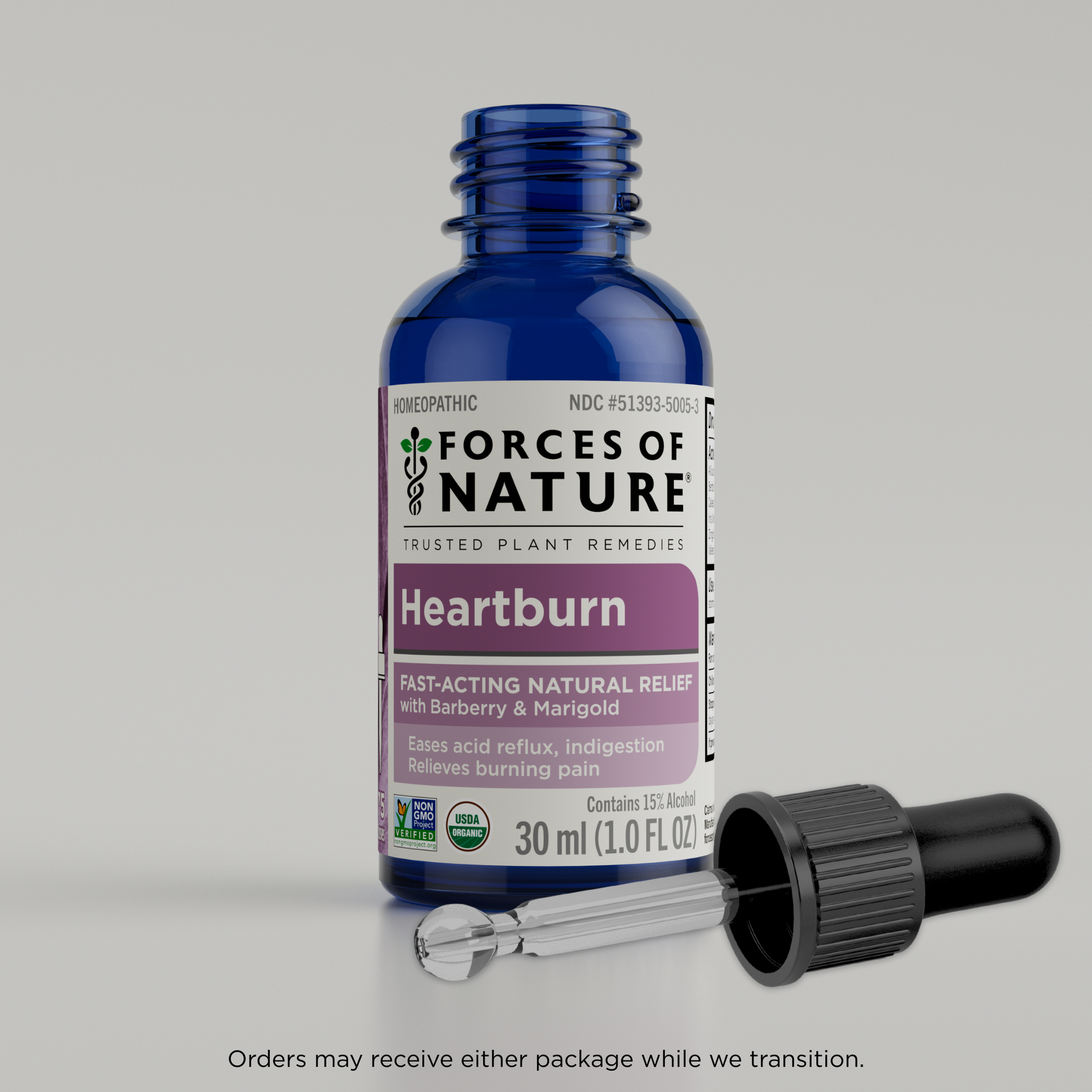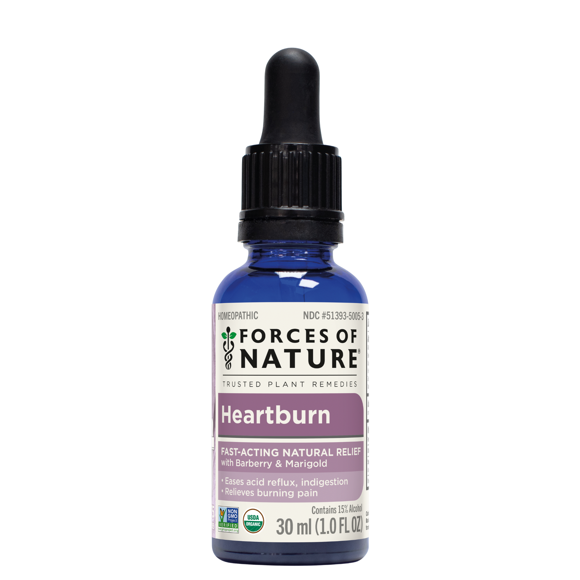 Forces of Nature Heartburn is a fast-acting, all-natural remedy designed to ease burning, indigestion, and acid reflux. This powerful formula combines organic homeopathic medicines, including Berberis Vulgaris (Barberry) known for its natural alkaloids, and Calendula Officinalis (Marigold) with anti-inflammatory properties. Taken as a few drops sublingually for fast absorption, Heartburn naturally soothes irritation and calms digestive discomfort. Unlike conventional antacids or acid blockers that have unwanted side effects or serve only to mask symptoms, this plant-based approach works with your body to restore digestive balance.