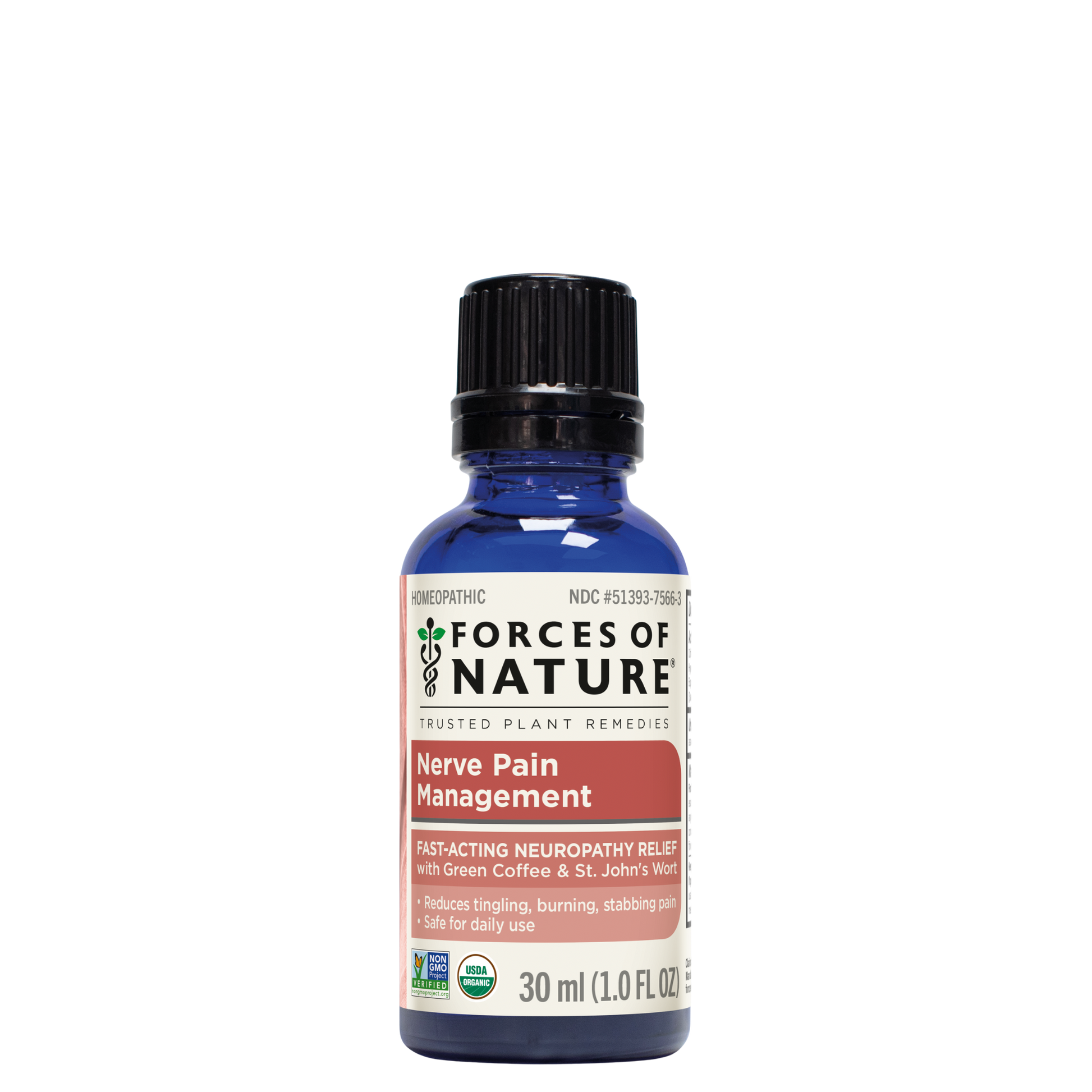 Forces of Nature Nerve Pain Management is designed to provide fast-acting neuropathy relief. If you’re experiencing burning, tingling, and shooting discomfort, this is a powerful blend of certified organic homeopathic medicines, including Coffea Cruda (Green Coffee) praised for its potent anti-inflammatory properties and Hypericum Perforatum (St. John’s Wort) known as a nervine tonic. These active ingredients are blended with pure essential oils, including Roman and German Chamomile, for soothing, deep penetration. Unlike common OTC pain relievers that often mask symptoms with capsaicin or menthol, our clean, plant-based medicine works with your body to calm sensitivity and restore comfort.