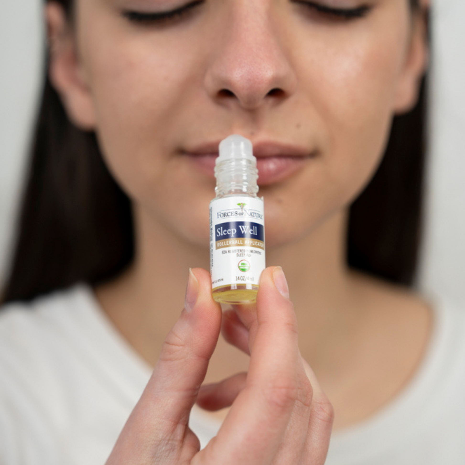 Forces of Nature Sleep Well is a gentle medicine designed to support your body and mind to relax and prompt the return to a natural sleep cycle. Thoughtfully crafted with a blend of organic homeopathic medicines, including Avena Sativa (Oats) known to calm the nervous system and Valeriana Officinalis (Valerian) recognized as a relaxant, it is applied topically to the forehead, temples, back of the neck, bottom of the feet, or inside of the wrists. The active ingredients are blended with pure essential oils, Lavandin and Clary Sage, to cue the body to relax with calming aroma. Unlike other conventional sleep medicines that may be based on melatonin (a hormone), or require a daily regimen to be effective, Sleep Well is entirely plant-based, goes to work fast, and is intended for use as needed.
