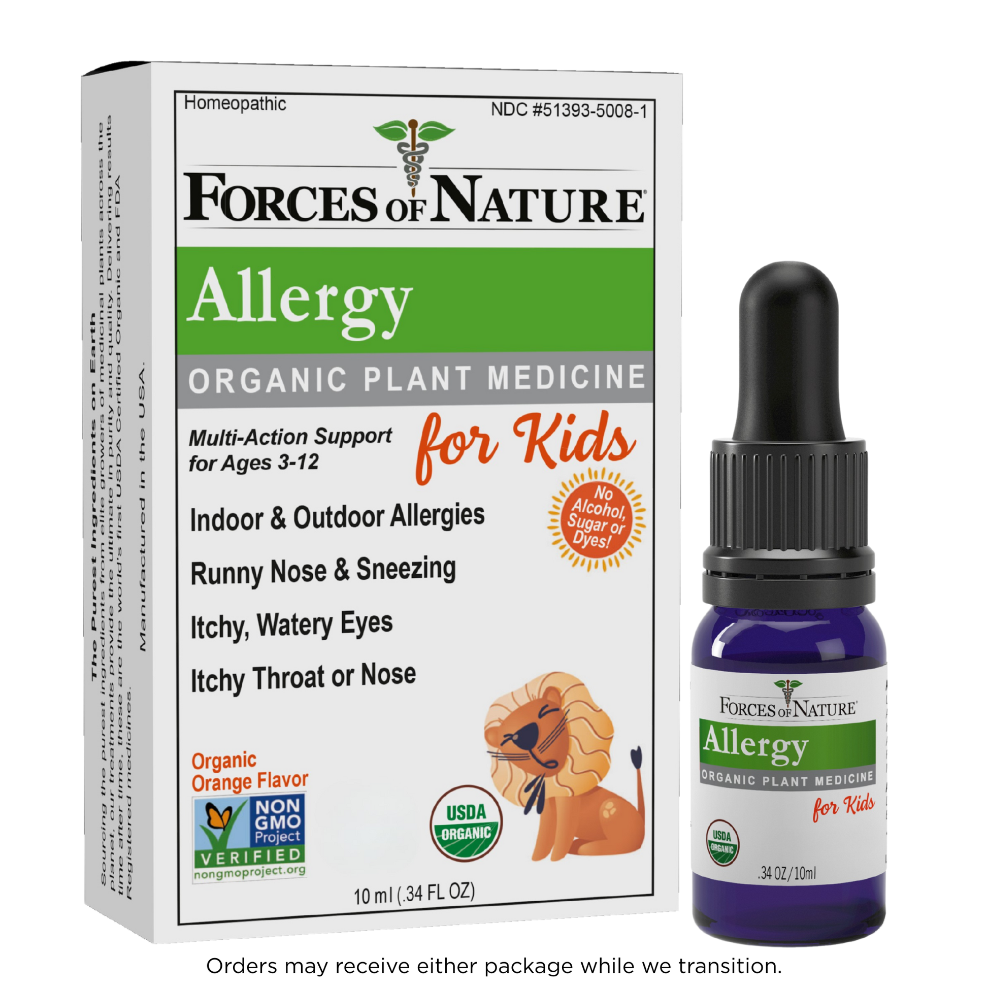 Forces of Nature Allergy Kids is a gentle, yet effective solution to relieve bothersome allergy symptoms like sneezing, runny nose, itchy eyes, and congestion. Allergy Kids is formulated with a unique blend of organic homeopathic medicines at lower potencies designed for young bodies. Active ingredients include Urtica Dioica (Stinging Nettle) and Althaea Officinalis (Marsh-mallow) that work to calm inflammation and are known to calm allergic reactions, reducing histamine-like responses.