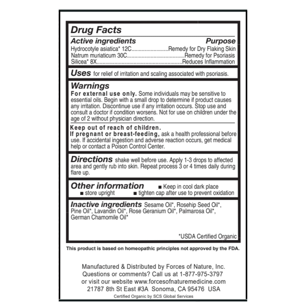 I am so elated that I found this product! I had such horrific psoriasis on my feet, hands, neck and eyelids. A dermatologist was only interested in giving me steroids. I started using this oil and within days my psoriasis was gone! I only use it as needed and it’s amazing! The itchy, painful red sores disappear so quickly. I’m eternally grateful for Forces of Nature!