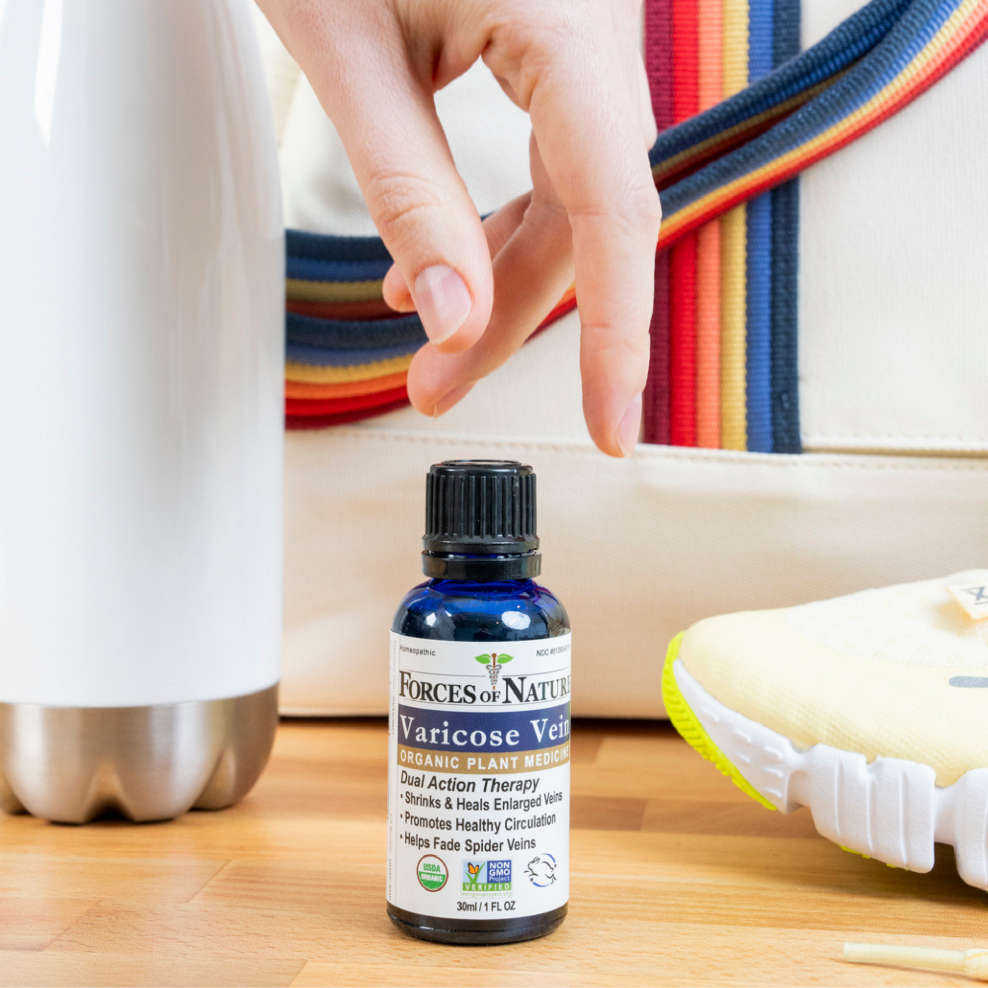 Forces of Nature Varicose Vein Control is a unique remedy designed to target the appearance and pain symptoms associated with venous issues. Formulated with a blend of organic homeopathic medicines, including flavonoid-rich Aesculus Hippocastanum (Horse Chestnut) and Hamamelis Virginiana (Witch Hazel), this formula targets discomfort and heaviness in legs while shrinking and fading the appearance of varicose and spider veins. Active ingredients are blended into pure essential oils, including Rose Geranium and Niaouli, to support deep penetration and nourish skin. Unlike conventional creams that can contain synthetic ingredients, alcohols, and fillers unnecessary for your skin health, this formula is entirely plant-based and created to work with your body naturally to support circulatory and skin health.